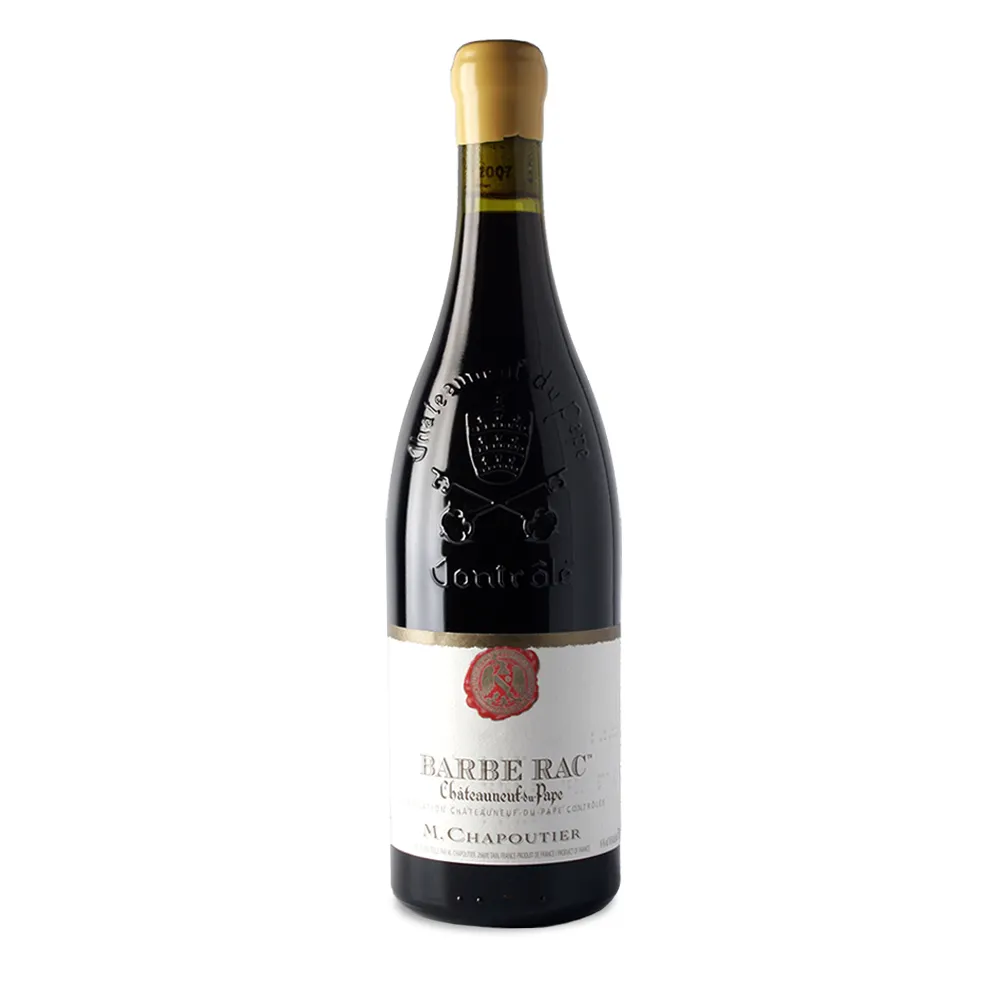 M. Chapoutier Châteauneuf-du-Pape Barbe Rac comes from a single parcel of very old grenache vines planted on the famous galets roulés of the appellation. Farmed biodynamically, the vineyard gives naturally tiny yields and intensely flavoured berries. The bouquet explodes with ripe strawberry, black cherry and raspberry, lifted by notes of orange zest, cocoa, nougat and garrigue herbs. On the palate the wine is full-bodied, dense and concentrated yet remarkably precise, with powerful but ripe tannins and a subtle mineral edge. The impressive depth and very long, spicy finish mark Barbe Rac out as a great Châteauneuf-du-Pape for special occasions, game, lamb and slow-cooked dishes.