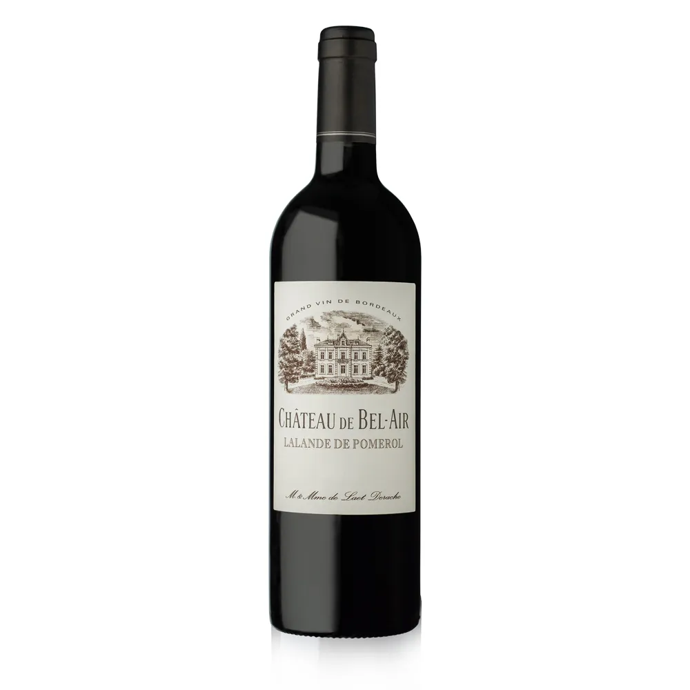 Château de Bel‑Air est situé en appellation Lalande‑de‑Pomerol, au nord de Pomerol, et fait partie du portefeuille Jean‑Pierre Moueix. Le vignoble de 15 hectares est planté de 73 % de Merlot, 19 % de Cabernet Franc et 8 % de Cabernet Sauvignon sur des graves quaternaires reposant sur des argiles à sous‑sol ferrugineux. Ce terroir donne un vin souple, aux arômes de cerise, prune et cassis, relevés d’une fine touche épicée. En bouche, Château de Bel‑Air se montre charmeur mais structuré, avec des tanins polis, une belle fraîcheur et une finale élégante, légèrement minérale – un Bordeaux de la rive droite au caractère affirmé.