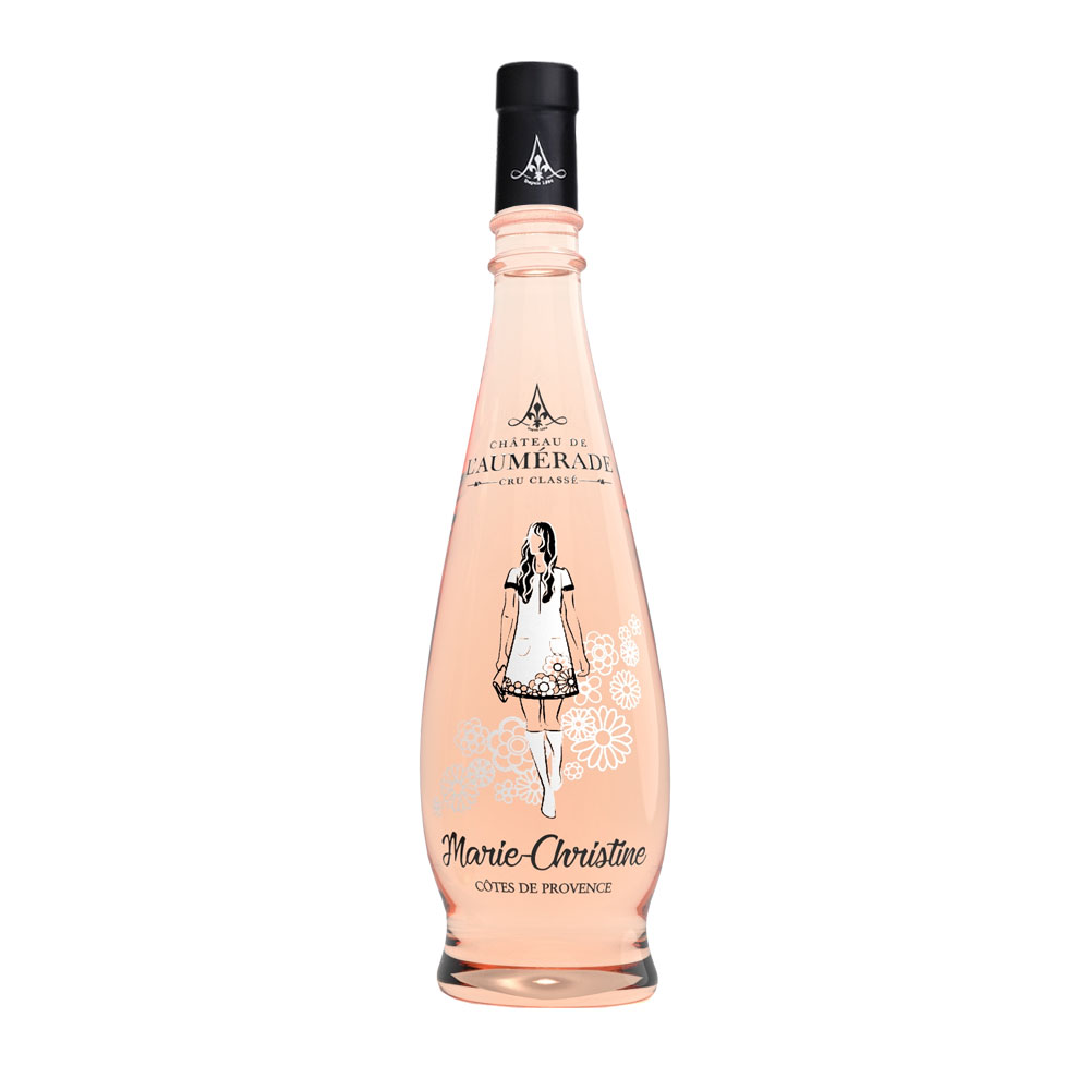 Château de l’Aumérade Cuvée Marie Christine Côtes de Provence Rosé Cru Classé is an iconic rosé from the heart of Provence, its distinctive bottle inspired by an Art Deco glass vase. The blend is based on classic local grapes such as Cinsault, Grenache and Syrah, harvested at night and gently pressed. In the glass the wine shows a very pale, powdery pink hue. The bouquet is fruity, fine and delicate, with peach, pink grapefruit and redcurrant notes, complemented by floral and herbal hints. On the palate it is juicy, subtly spicy and beautifully balanced, with fresh acidity and a long, graceful finish. Perfect as an aperitif and alongside salads, grilled fish, light pasta dishes and Mediterranean summer cuisine.