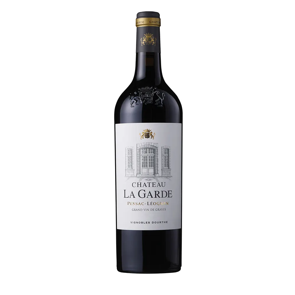 Château La Garde liegt in Martillac im Herzen der Appellation Pessac-Léognan und gehört zum Haus Dourthe. Seine Weinberge erstrecken sich über ein Mosaik aus rund 27 Bodenprofilen, darunter ein hochgelegenes Kiesplateau sowie Parzellen mit lehmig-sandigen Böden. Die rote Cuvée basiert auf Cabernet Sauvignon und Merlot, ergänzt durch weitere Bordeaux-Rebsorten. In der Nase zeigt der Wein Cassis, dunkle Kirsche und Pflaume, dazu Rauch, Grafit und feine Kräuterwürze. Am Gaumen ist Château La Garde kräftig und strukturbetont, mit reifen Tanninen, frischer Säure und einem langen, mineralisch geprägten Pessac-Finale.