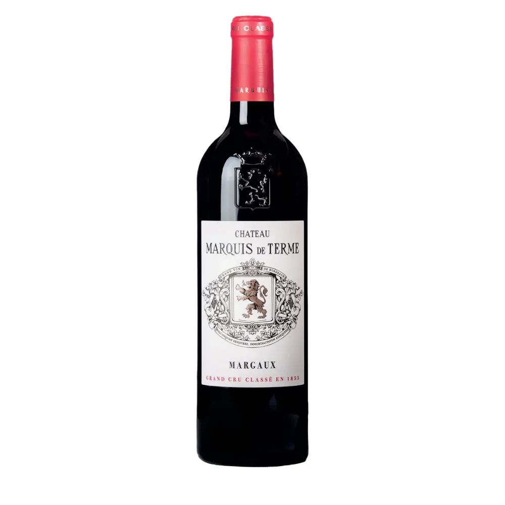 Château Marquis de Terme ist ein Quatrième Grand Cru Classé im Herzen von Margaux und verfügt über rund 40–45 Hektar Reben. Die Stöcke wachsen auf typischen Kiesbänken mit sandigen und lehmigen Anteilen, die Wärme speichern und für gute Drainage sorgen. Bepflanzt ist der Weinberg überwiegend mit Cabernet Sauvignon und Merlot, ergänzt durch Petit Verdot. Das Gut setzt auf naturnahe Bewirtschaftung und moderne Kellerausstattung. Nach selektiver Handlese wird parzellenweise vergoren und in französischen Barriques ausgebaut. In der Nase zeigen sich Schwarze Johannisbeere, Kirsche und Pflaume, dazu Veilchen, Gewürze und feine Röstaromen. Am Gaumen präsentiert sich Marquis de Terme vollmundig, seidig und strukturiert, mit reifen Tanninen, Frische und einem würzig‑eleganten Finale.