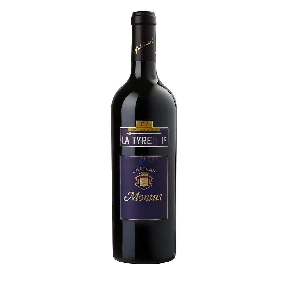 La Tyre è la cuvée di punta di Château Montus a Madiran e proviene da un’unica parcella di circa dieci ettari, ripida e perfettamente esposta, piantata esclusivamente a Tannat. Il vigneto si trova su un altopiano di ciottoli arrotondati sopra argille rosse e produce rese naturalmente basse e uve molto concentrate. Dopo un’accurata vendemmia manuale, il vino macera a lungo sulle bucce e affina 14–16 mesi in barrique nuove di rovere francese, seguiti da un lungo riposo in bottiglia. Al naso La Tyre offre frutti neri, prugna e ciliegia sotto spirito, con tabacco, cacao, liquirizia e eleganti note tostate. In bocca è profondo, potente e complesso, con tannini fitti ma raffinati, grande freschezza e un finale lunghissimo e teso.