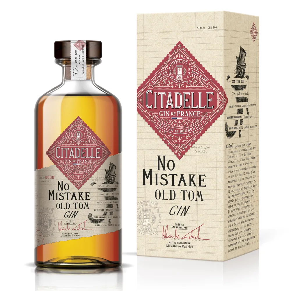| Citadelle No Mistake Old Tom es una interpretación moderna del estilo Old Tom, elaborada a partir de un gin envejecido en diferentes barricas al que se añade azúcar de caña tostado y también criado en madera. La base es Citadelle Réserve, que descansa en roble antes de mezclarse con el azúcar caramelizado y seguir madurando. En nariz ofrece pieles de cítricos, enebro, almendras y anís, con notas de caramelo, nuez moscada y canela. En boca No Mistake resulta sedoso, amplio y levemente dulce, con matices florales y frutales sostenidos por una estructura especiada. La dulzura está bien equilibrada y realza las notas botánicas. Su largo final cálido y especiado lo hace ideal para Tom Collins, Martinez y cócteles de corte Old Fashioned a base de gin. | |
