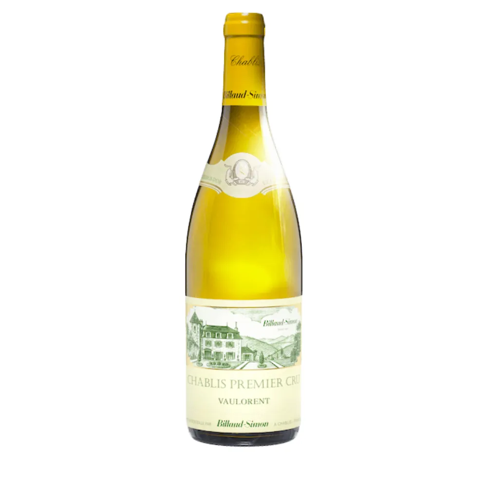 Chablis 1er Cru Vaulorent from Domaine Billaud-Simon is sourced from a cool slope that borders the grand cru hill, where classic Kimmeridgian limestone and clay deliver salty tension. Most of the chardonnay vines are old and deeply rooted, and the wine is raised mainly in stainless steel with a small proportion in oak to add texture and finesse. The bouquet offers lemon, pear and white peach alongside chalk, seashells and a faint smoky note. On the palate Vaulorent is intense and compact yet very cool in style, driven by vibrant acidity and crystalline minerality. Discreet oak remains in the background and gently frames the precise fruit. The long, saline and citrus-laced finish marks this premier cru as a fine terroir wine for top-quality fish, shellfish and pure, simple cuisine.