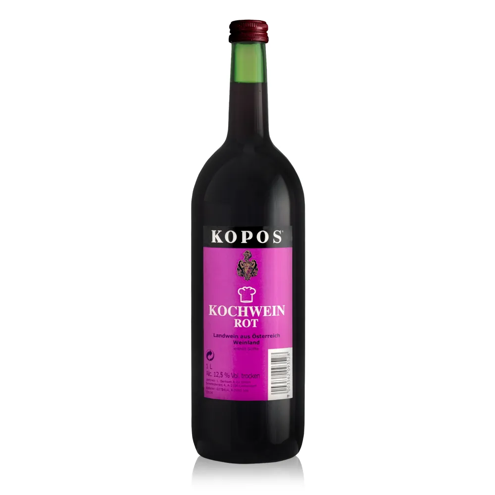 | KOPOS Rotwein è un vino rosso secco austriaco e fa parte della linea di vini da cucina KOPOS. È prodotto principalmente da uve Zweigelt e Rössler e offre uno stile fruttato e ben equilibrato. Al naso si riconoscono ciliegia, piccoli frutti rossi e leggere note speziate. In bocca il vino è di medio corpo, secco e rotondo, con tannini morbidi. La struttura chiara lo rende ideale per sfumare fondi di cottura, stufati, ragù e salse scure. Può essere servito anche come semplice vino da tavola per piatti casalinghi sostanziosi. | |