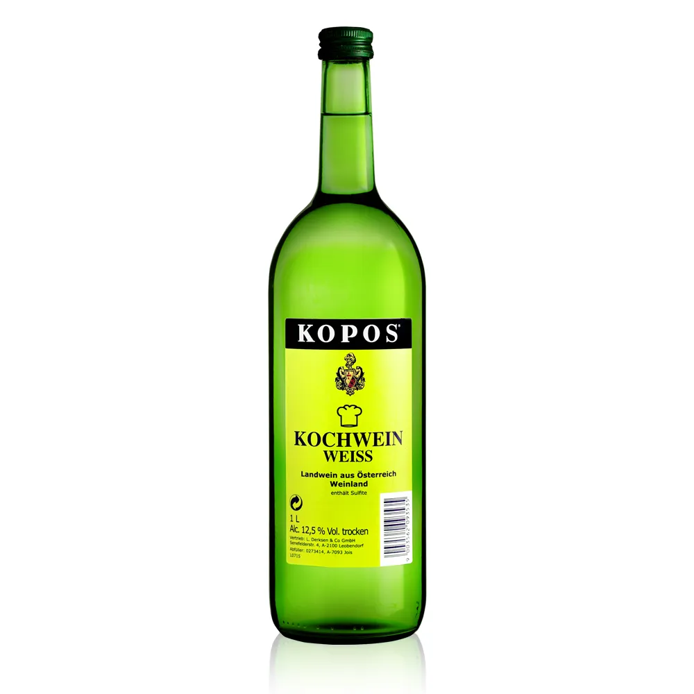 | KOPOS Weisswein es un vino blanco seco austriaco pensado principalmente para cocinar y elaborado exclusivamente con uvas Grüner Veltliner. Su estilo fresco y directo aporta cítricos, manzana verde y un ligero toque de pimienta blanca. En boca es seco, ágil y de cuerpo esbelto, sostenido por una acidez viva. Este perfil neutro pero expresivo lo hace ideal para refinar salsas claras, sopas y platos de verduras. Se utiliza a menudo para crema de espárragos, risottos o para desglasar aves y carnes blancas. Por su perfil fiable es también muy apreciado en la restauración profesional. También en la mesa diaria acompaña bien platos sencillos de cocina casera. | |
