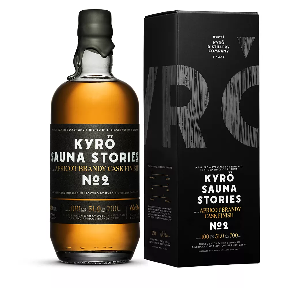 | Kyrö Single Malt Rye Whisky Sauna Stories No. 2 brings Finnish sauna culture into the glass. Made from 100% rye, it first matures in new American oak before receiving an apricot brandy cask finish in a heated sauna. The nose reveals exotic wood, vanilla, ripe apricots and dried fruit with spicy undertones. On the palate it is full-bodied yet silky, driven by rye spice, warm oak and bright stone fruit. Sauna maturation deepens structure and aroma without weighing the whisky down. The long, complex finish once again blends fruit, spice and gentle toast, making this a contemplative dram for unhurried evenings. | |