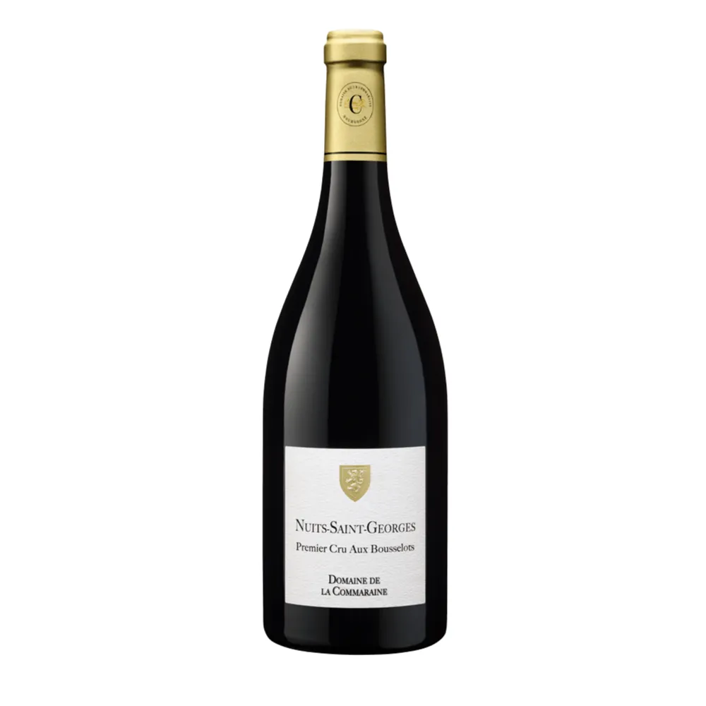 Nuits-Saint-Georges 1er Cru Aux Bousselots from La Commaraine comes from slightly sandy clay-limestone soils on the northern edge of the village. This Pinot Noir shows a ruby colour and a delicate bouquet of raspberry, cherry and gentle spice. The palate combines juicy fruit with velvety tannins and elegant wood. Structure remains firm but never rustic, instead feeling charming and well balanced. A long finish echoes red berries, fine herbs and discreet minerality. Pair with roast lamb, veal or classic Burgundian stews.