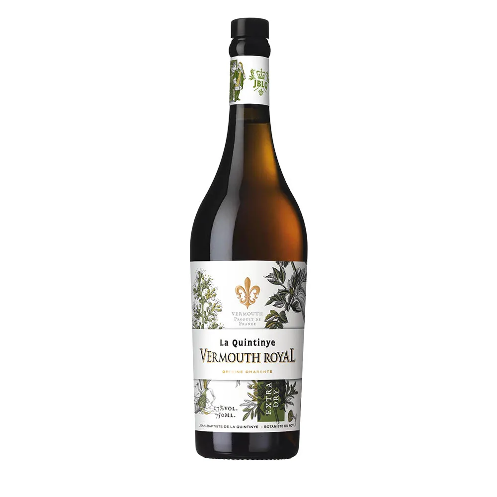 La Quintinye Vermouth Royal Extra Dry shares the same base of white wines and Pineau des Charentes, but is bottled in a decidedly drier, crisper style. Aromatically it shows white flowers, lemon zest, green herbs and a hint of grape. On the palate it is taut, vibrant and delicately bitter, with a clean, linear structure. Subtle fruit sweetness only rounds the edges without softening the dry profile. A persistent, salty-fresh finish makes it an ideal component for classic cocktails. In Martini, Vesper or as a dry accent in modern aperitif drinks, this Extra Dry delivers clarity, lift and a very French sense of elegance.