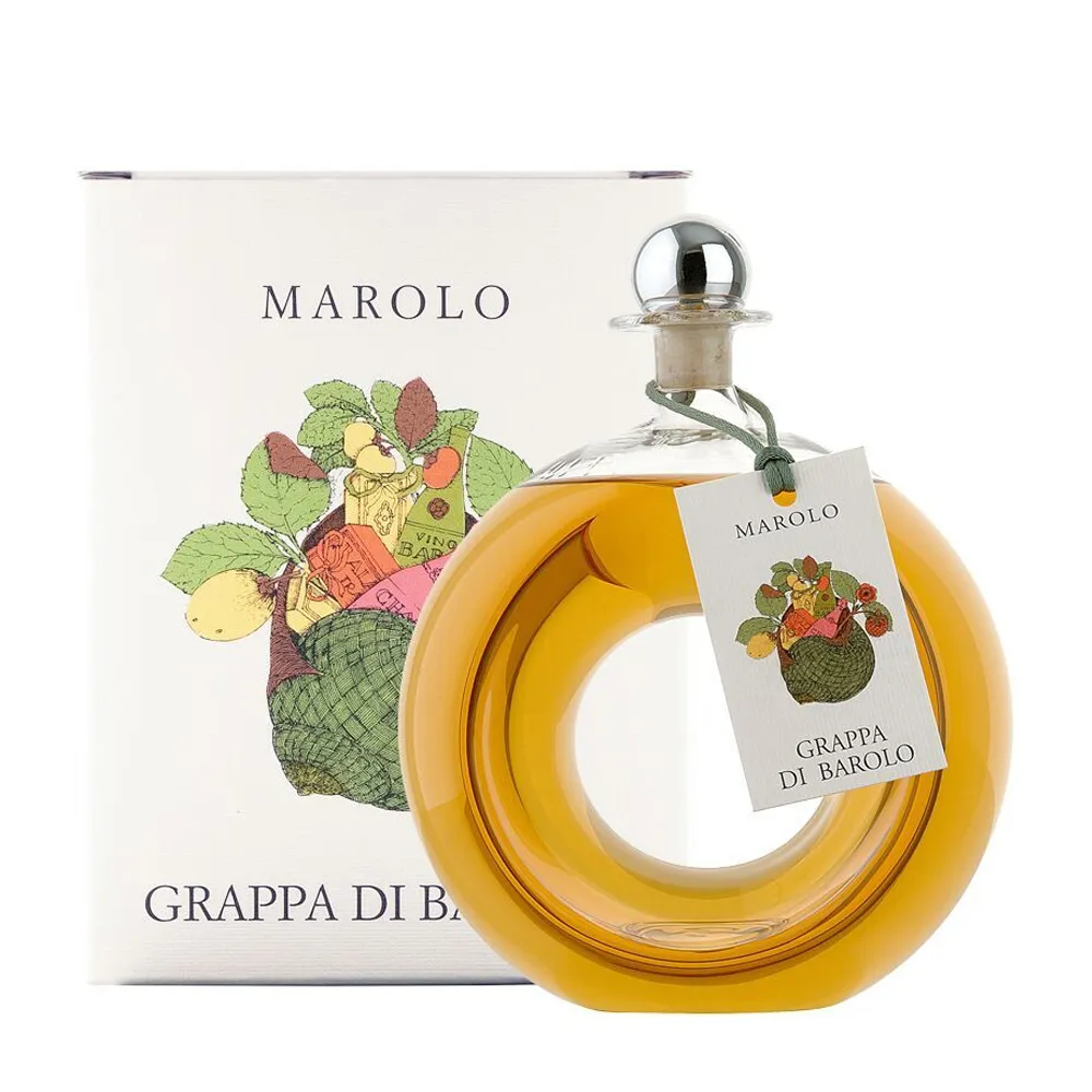 | Presented in the sculptural Foro decanter, this aged Barolo grappa from Marolo is made entirely from Barolo pomace. Maturation in wood shapes a spirit that is both powerful and refined. The bouquet offers vanilla tones, gentle roasted notes and hints of dried fruit. On the palate it is full-bodied and warm, with a smooth texture and oak that is seamlessly integrated. The finish is long, velvety and pleasantly spicy. A showpiece digestif from Piedmont whose generous aromas and striking decanter make it ideal for special occasions. | |