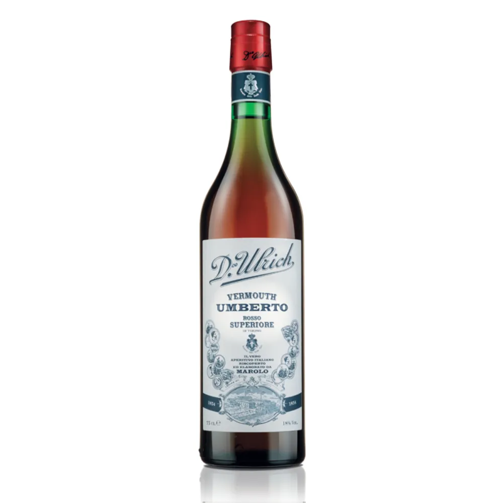 Umberto Vermouth Rosso Superiore is based on a historic Domenico Ulrich recipe from the nineteenth century, revived and refined by Distilleria Marolo. Wines from Piedmont are infused with a carefully balanced blend of botanicals, where the distinct bitter tones of cinchona bark and hyssop play a leading role. After maceration the extracts spend several months in wooden casks, gaining balsamic depth and a rounded, full-bodied texture. The nose offers notes of orange peel, aromatic herbs, spice and a gentle sweetness. On the palate the vermouth is rich and vibrant yet beautifully harmonious, with a long, pleasantly bitter finish. Served neat over ice with a twist of orange it becomes a true meditation drink and is also an excellent base for classics such as Negroni or Manhattan.