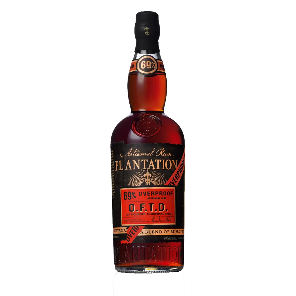 Plantation O.F.T.D. Overproof es una mezcla contundente de rones de Barbados, Jamaica y Guyana, concebida junto a prestigiosos bartenders como ron tiki de referencia. En nariz muestra café tostado, piel de naranja, mermelada de ciruela, melaza, vainilla y un matiz terroso. En boca irrumpe con crema de caramelo, chocolate negro, pasas y especias como nuez moscada, canela y clavo, apoyadas por roble y melaza ahumada. La alta graduación aporta calor pero la textura sigue siendo sedosa, con un final muy largo, oscuro y especiado. Ideal para Zombies, Mai Tais y otros cócteles de gran intensidad. Es un aliado imprescindible en la barra.