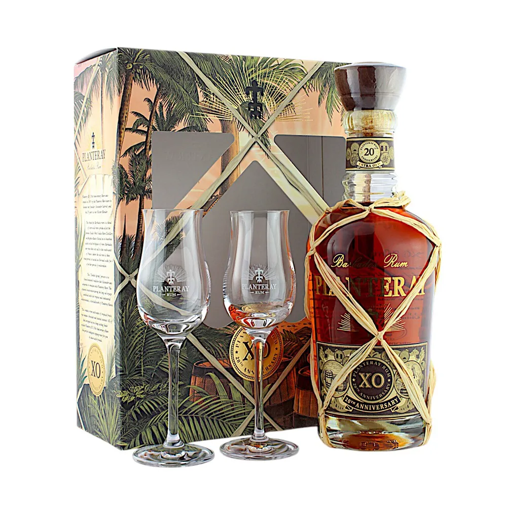 | The Planteray Barbados Extra Old 20th Anniversary gift set brings together the iconic XO rum and two elegant glasses. The spirit is first aged in ex-bourbon casks in Barbados before travelling to France for further maturation in Ferrand cognac barrels. The bouquet is luxurious, with coconut, vanilla, ripe banana and sugarcane framed by caramel, toffee and toasted coconut. On the palate it feels velvety and opulent, showing milk chocolate, candied pineapple, dried fruit and gentle baking spice. A long, creamy finish with hints of mango, banana and soft oak makes this set an ideal choice for relaxed after-dinner moments or as a thoughtful gift. | |