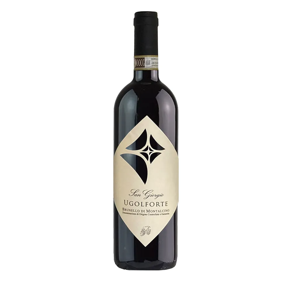 Ugolforte is the Brunello di Montalcino from Tenuta San Giorgio, produced from 100% Sangiovese grown around Castelnuovo dell’Abate. The organically farmed grapes undergo a long maceration before ageing in large vats and oak casks. The bouquet shows ripe cherries and wild berries alongside rosewood, liquorice, spices and balsamic herbs. On the palate Ugolforte is juicy and full yet finely chiselled, with grainy but ripe tannins and vibrant, well integrated acidity. Mineral tones and a hint of smokiness underline the wine’s depth and freshness. The long, harmonious finish makes Ugolforte a classic partner for braised beef, lamb, game dishes and aged hard cheeses.
