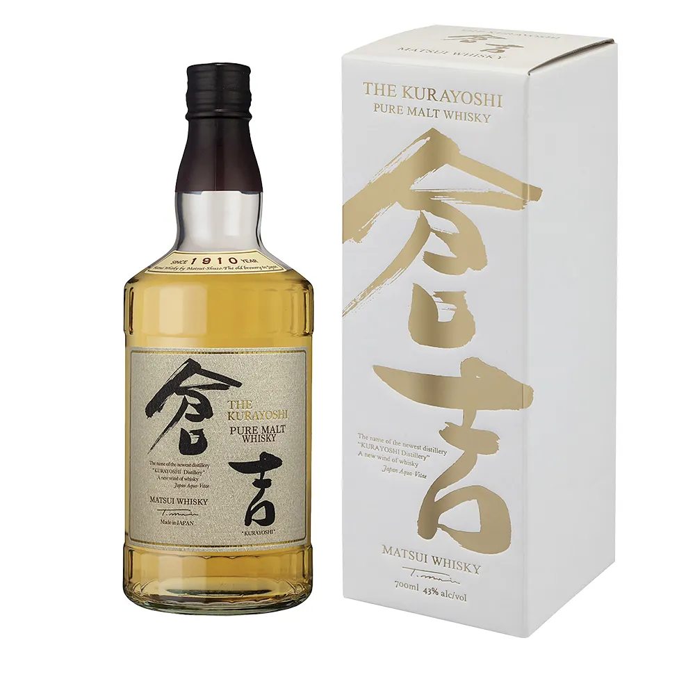 The Kurayoshi Pure Malt Whisky 43% is the core expression of the brand from the Matsui distillery in Tottori. It is a blended malt made from selected Scottish and Japanese whiskies matured in oak and proofed with volcanic stone filtered spring water. The nose delivers sweet oak, honey and malt with hints of sherried fruit, nuts and a touch of earthy peat. On the palate the whisky is soft and rounded, showing dried fruit, vanilla, caramel and gentle baking spice. A subtle smoke note and nutty flavours accompany the mild, well balanced finish. A versatile Japanese pure malt that works equally well neat, over ice or as a refined base for whisky cocktails.